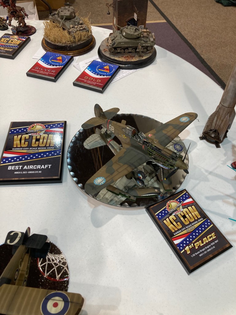 Ad Astra Modeling Club was well represented and won numerous awards, as you can see on the tableBill won 1st place in his category and best aircraft in the show. Stephen’s awards are in the backgroundStephen’s military dioramaAnother of Stephen’s dioramasA large diorama by an unknown show participantMy KCCON entry – ’59 Peterbilt and Fruehauf tanker from 1971 movie “Duel”An unknown show entry – ‘cuz I like trucks!